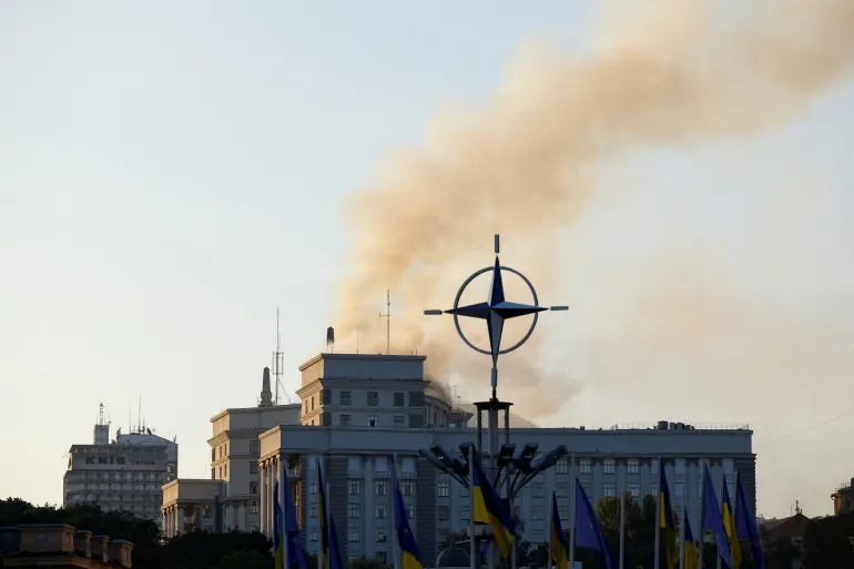 من جانبه، قال رئيس الإدارة العسكرية للعاصمة الأوكرانية تيمور تكاتشينكو إن النيران اشتعلت على سطح مبنى الحكومة في منطقة بيشيرسكي في كييف.