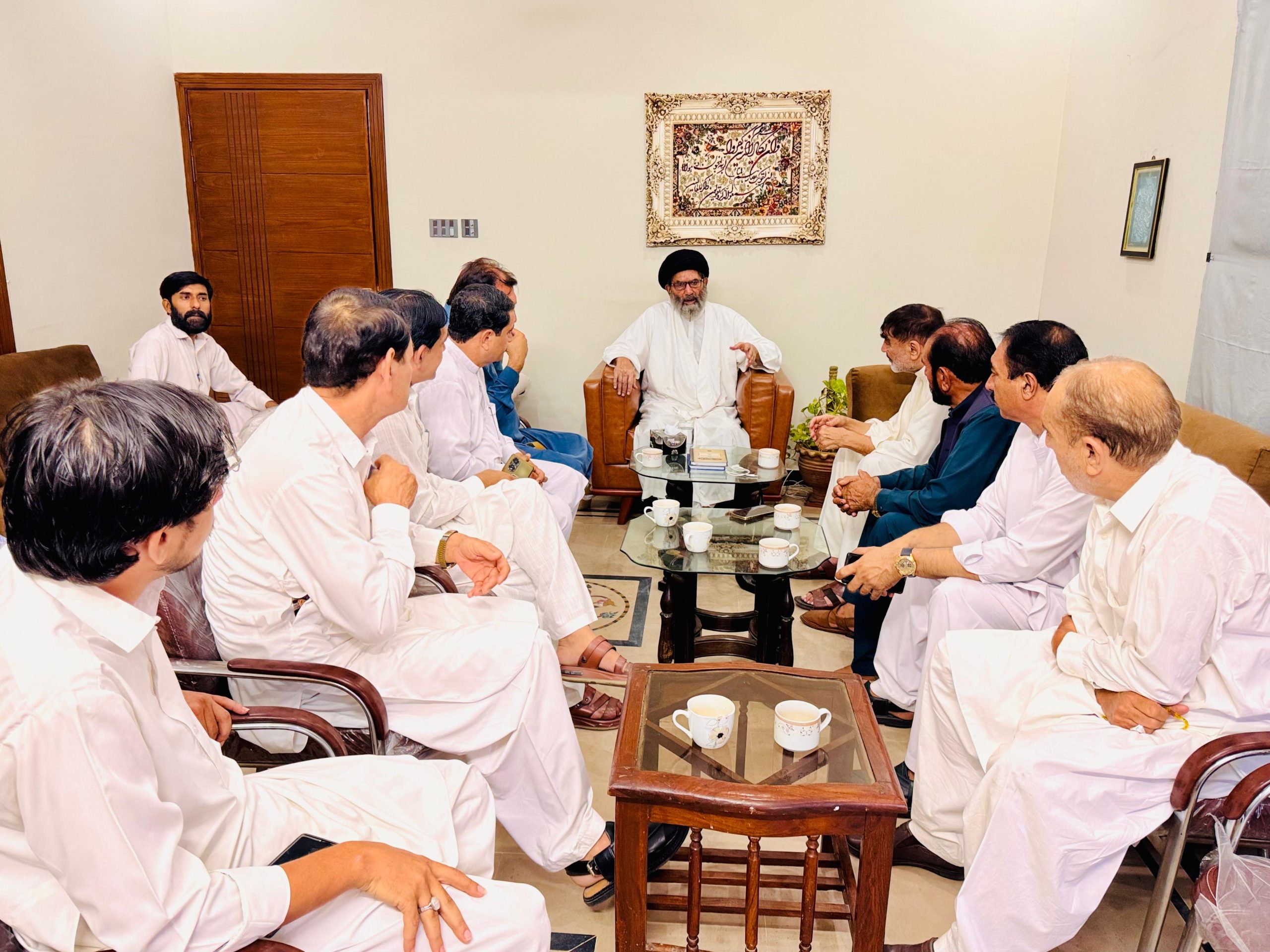 التقى وفد من الهيئة المركزية لوحدة كرم القادم من باراچنار بقائد الأمة الجعفرية في باكستان، آية الله السيد ساجد علي نقوي، برئاسة رئيس مجلس وحدة كرم إسلام آباد، الحاج محمد نظر. وخلال اللقاء، ناقش الوفد بالتفصيل مع القائد المحترم القضايا العامة لمنطقة كرم-باراچنار، حيث قدّموا له ملاحظاتهم. وأعطى القائد توجيهاته، كما جرى تبادل الآراء حول القضايا الإقليمية بما في ذلك الأمن والسلام على مستوى المنطقة، إغلاق الطرق، والمشكلات القائمة.