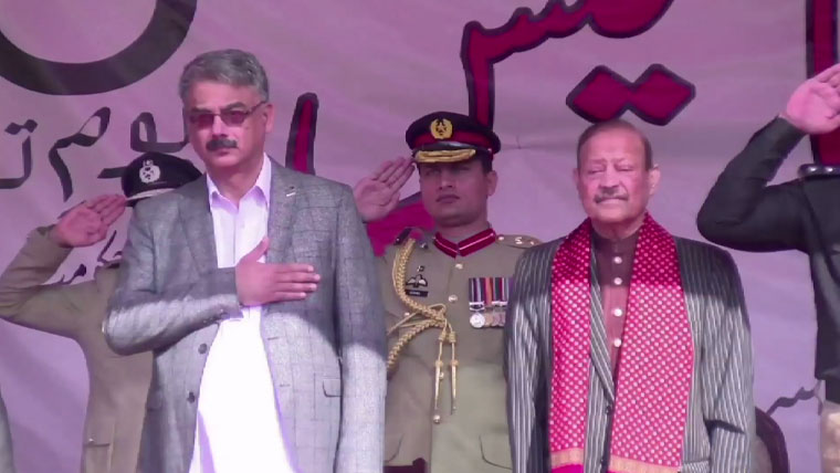 اس موقع پر پاک فوج کے جوانوں نے 21 توپوں کی سلامی دی، پاکستان اور آزاد کشمیر زندہ آباد کے فلک شگاف نعرے لگائے گئے۔